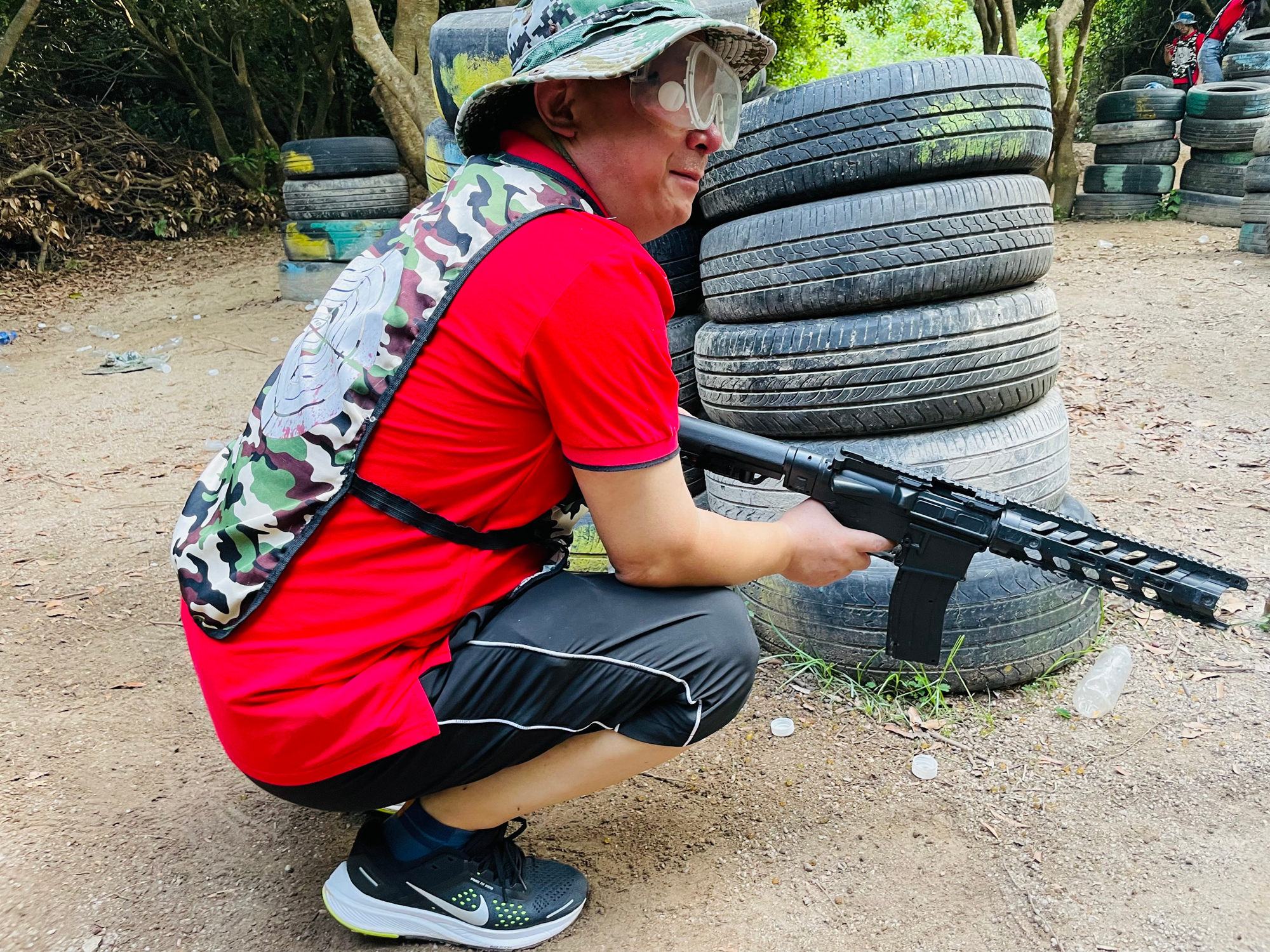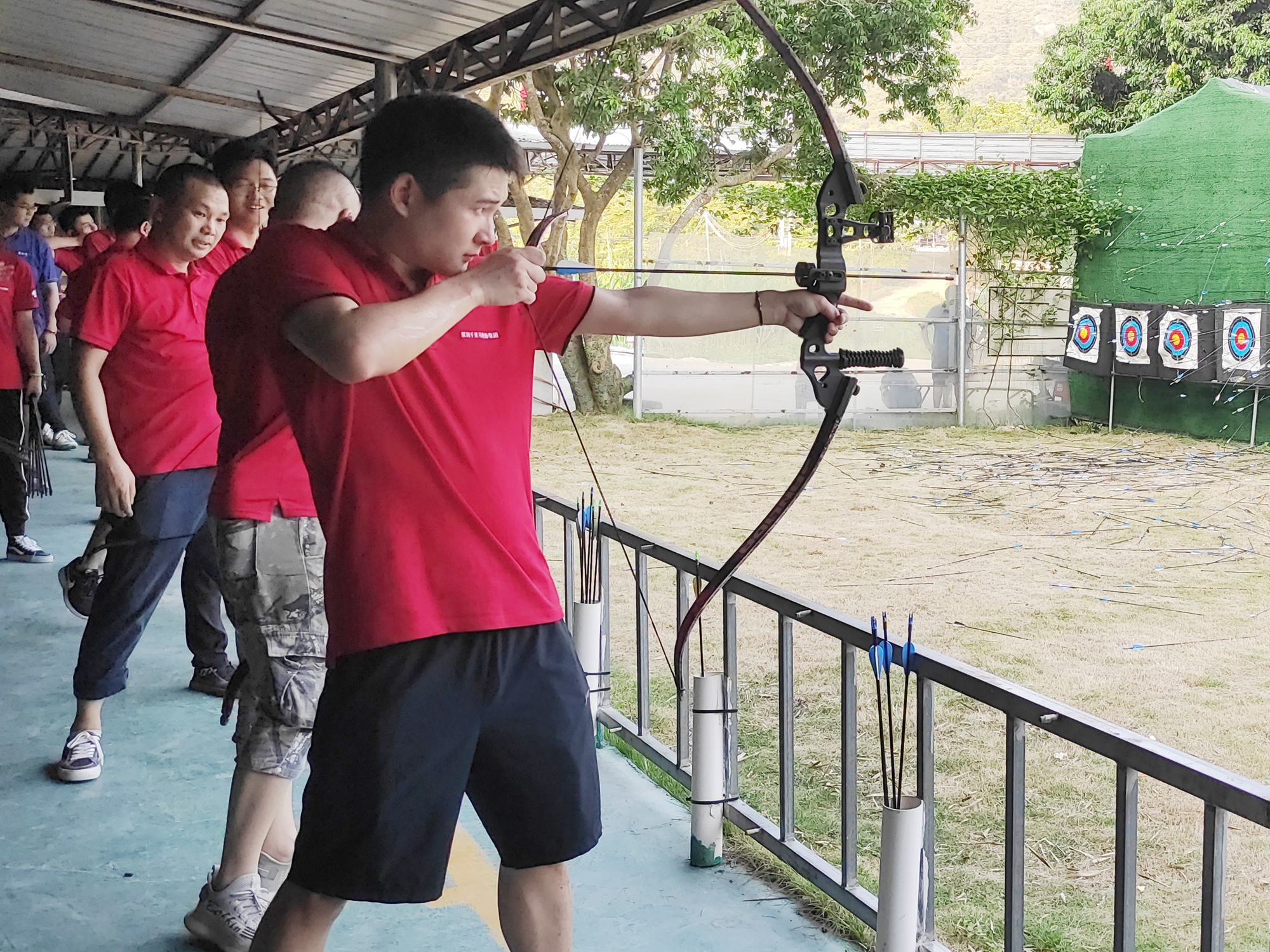 CS真人對戰(zhàn)之后,是距離CS基地10米遠處的射箭活動。蘇軾說,“會挽雕弓如滿月”,當真正接觸到箭之后,我們才明白,這如滿月的箭中包含了多少手臂肌肉中分泌的乳酸。