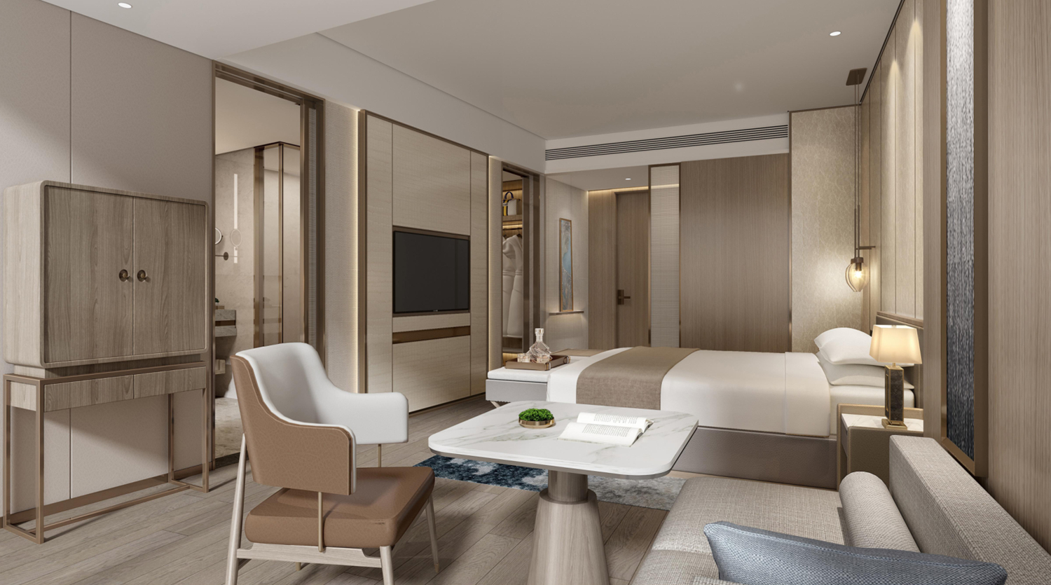 長春中日友好會館B座為擴建工程,項目總投資5億元,占地面積1.7萬㎡,建筑面積6.4萬㎡ ,主要建設五星級酒店1棟。新建的24層建筑面積49000平方,擁有269間客房,其中1層為酒店大堂、日式餐廳,2層為中式包廂及宴會廳,3層為多功能廳,四層為會議室、會見廳、辦公室,6層為全日餐廳,7至24層為客房。千里馬裝飾集團中標長春中日友好會館B座項目精裝修工程一標段(12-22層、24層)項目,建筑面積13939.61平方米。